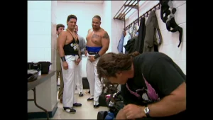 As the film unfolds, Bret turns "bad", at least in the United States. He starts a "war with America" where he attacks the American fans for cheering the bad guys. In Canada, Bret becomes a figure standing against American arrogance, and upholding "Canadian" values. It's another form of chauvinism, but perhaps a little more benign.